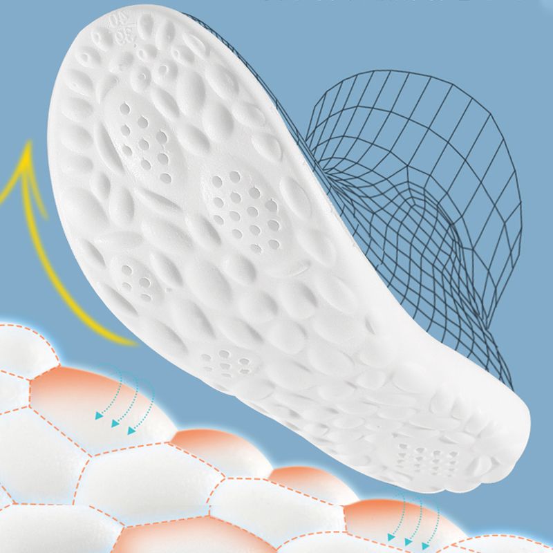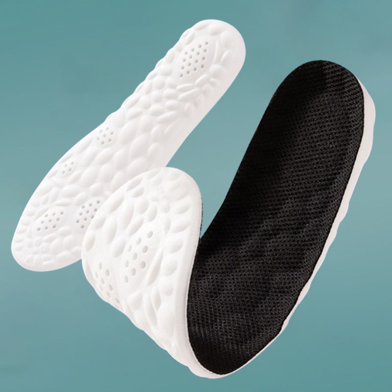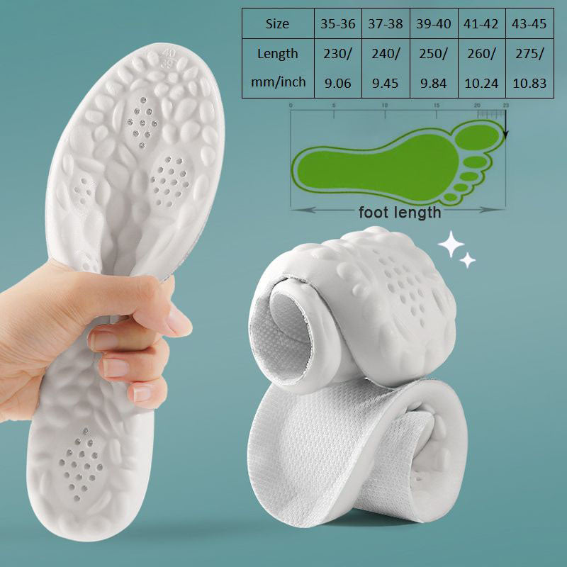 * Uitstekende schokabsorptie: speciaal ontworpen om trillingen volledig te absorberen en de voetdruk bij elke stap te verminderen. Geschikt voor intensieve training en helpt vermoeidheid door inspanning, zoals scheenbeenspalken, hardlopersknieën en fasciitis plantaris, te verminderen.