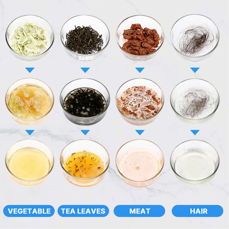 Krachtige functie: Het kan verstoppingen in leidingen zoals haar, papier, zeepresten, groenten, fruit, etensresten, vet, vlees en organische materialen snel oplossen.
