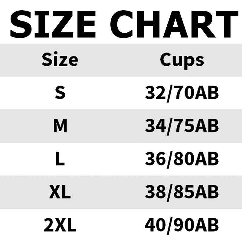 Maat: S ( 32/70AB ), M ( 34/75AB ), L ( 36/80AB ), XL ( 38/85AB ), 2XL ( 40/90AB )