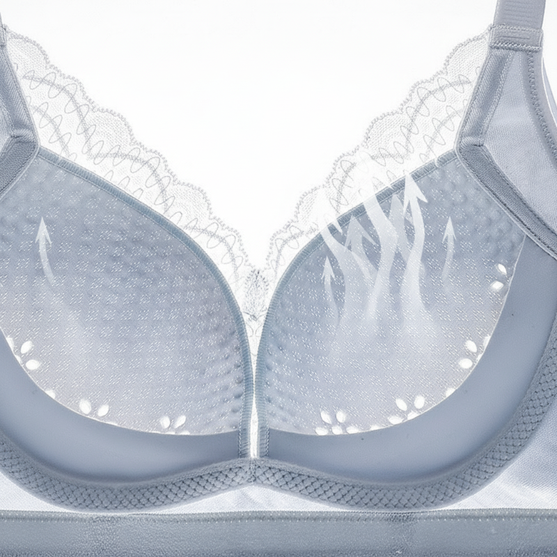 ULTRA-ADEMEND COMFORT: Dankzij de innovatieve geperforeerde cups bevordert deze bh een optimale luchtstroom om je koel en droog te houden. De lichtgewicht, vochtafvoerende stof zorgt voor comfort de hele dag, zelfs bij het warmste zomerweer, en voorkomt benauwdheid.